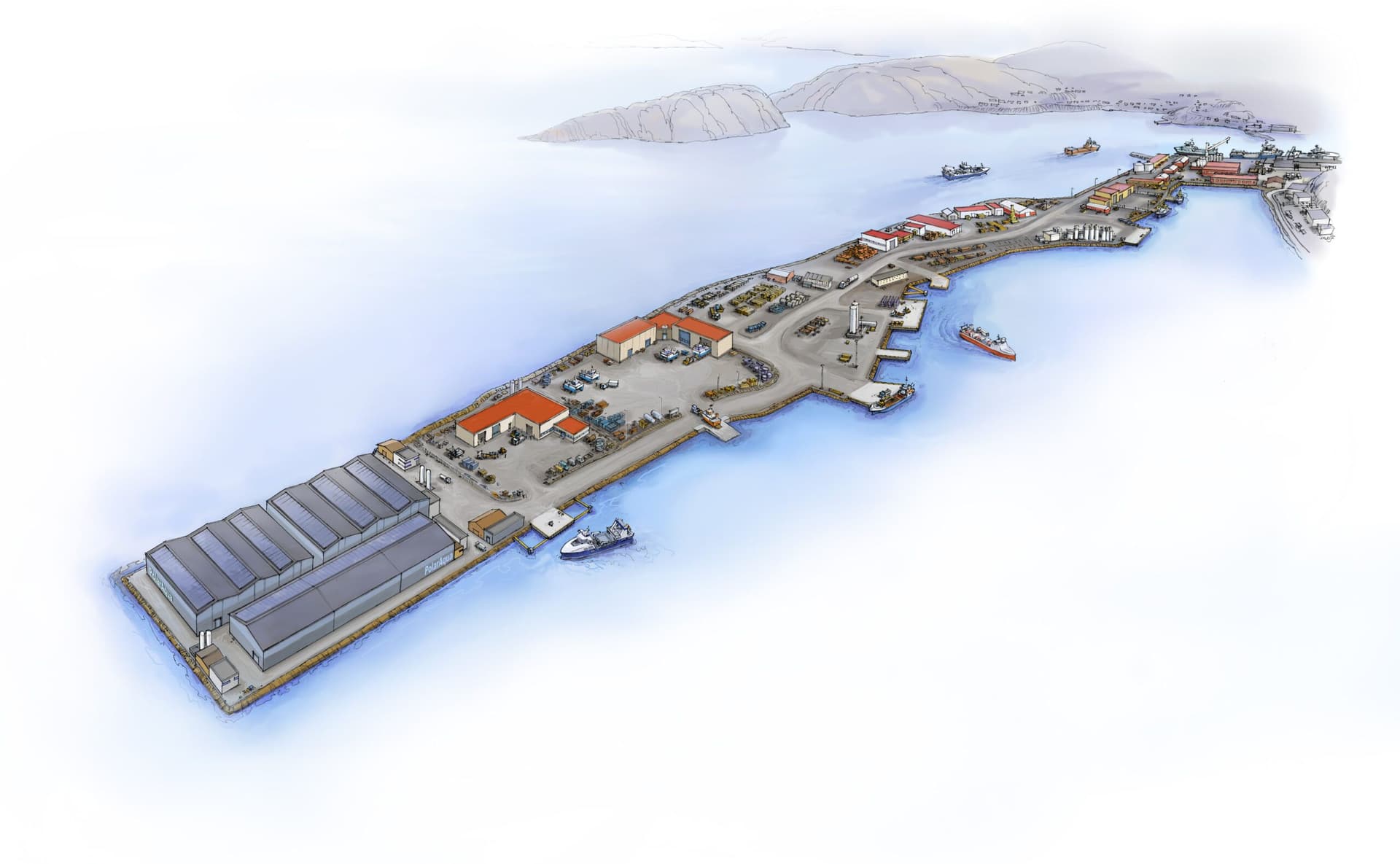 Mulig område for landbasert akvakultur og som servicebase. Polarbase ligger nær viktige maritime transportårer, noe som gjør den ideell som logistikk-knutepunkt for både dagens og fremtidens havbaserte næringer.